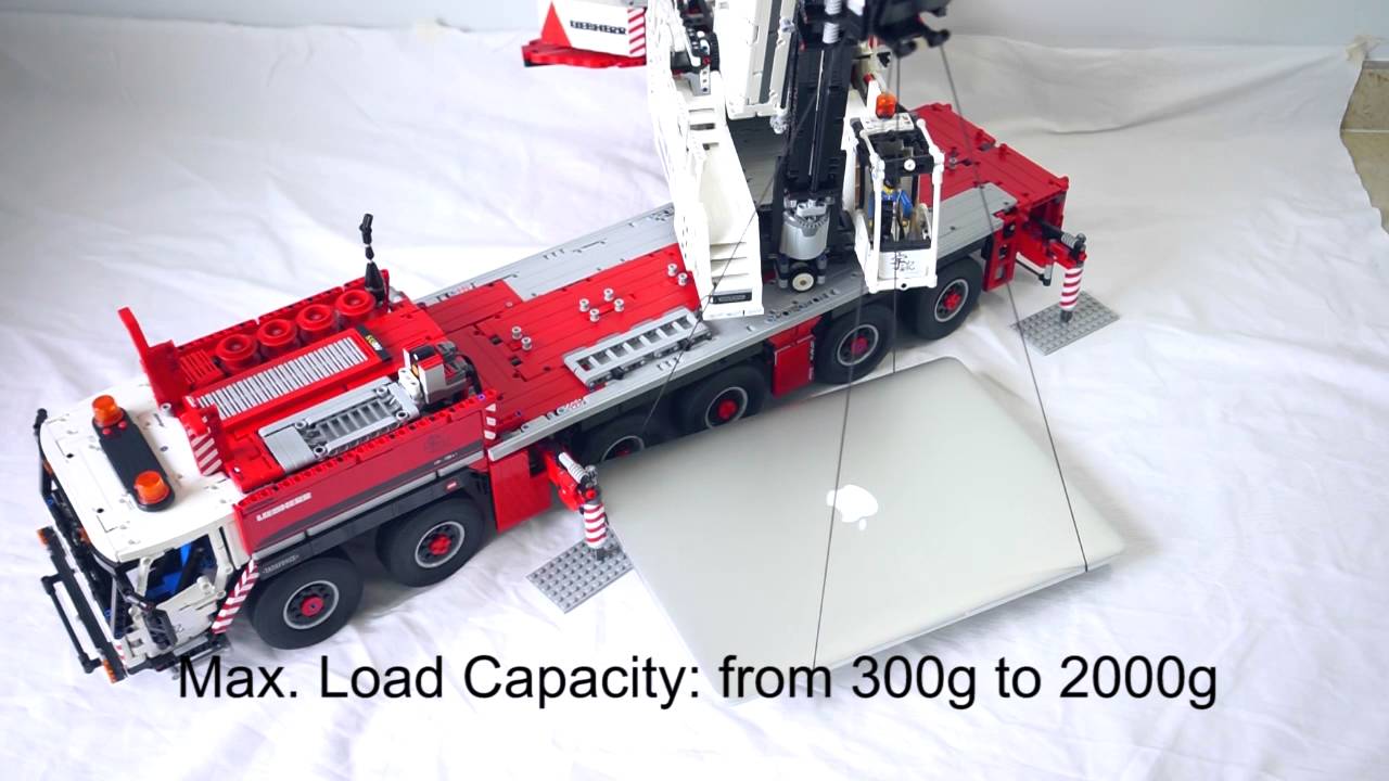 Dann einen starken Mechanismus weiter verfeinert, und der Lift musste auszustatten, leistungsfähiger und selbst verbesserten XL-Motor von LEGO. Ursprünglich Kran heben konnte nur 300 Gramm, aber jetzt, wo der Schöpfer der Entwurf perfektioniert, der Liebherr LTM ruhig meistert Traglasten bis zu zwei Kilogramm. Sehen, wie der Autokran hebt ohne Probleme пятнадцатидюймовый Macbook Pro, kann man auf dem Video.