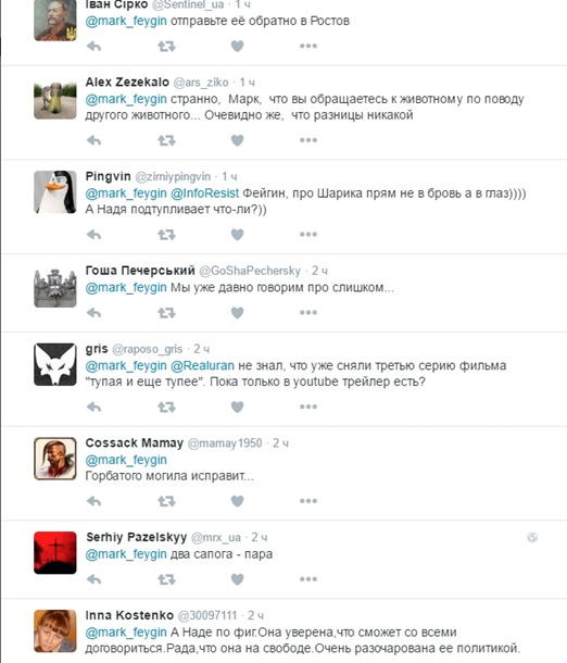 Rosyjski adwokat Mark Fejgin po obejrzeniu filmu, w którym była oskarżona daje wywiad пропагандисту, oświadczył, że “to już przesada”. Odpowiedni wpis pojawił się na Twitterze Fejgina.