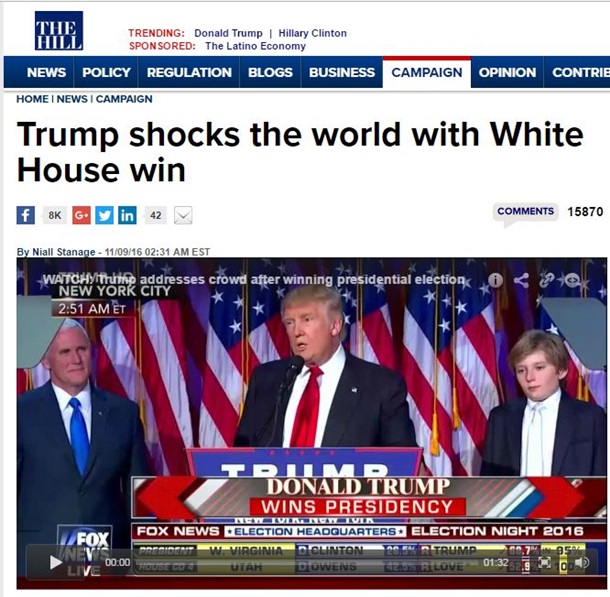 Zwycięstwo Donalda Trumpa w wyborach na prezydenta USA podekscytowany całego świata. Prawie cała prasa wyszła z nagłówkami o “шокирующем i nieprzewidywalne” triumfie Trumpa.