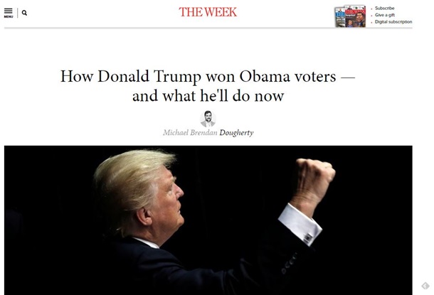 Pisze, że Trump przechylił na swoją stronę wyborców Obamy.