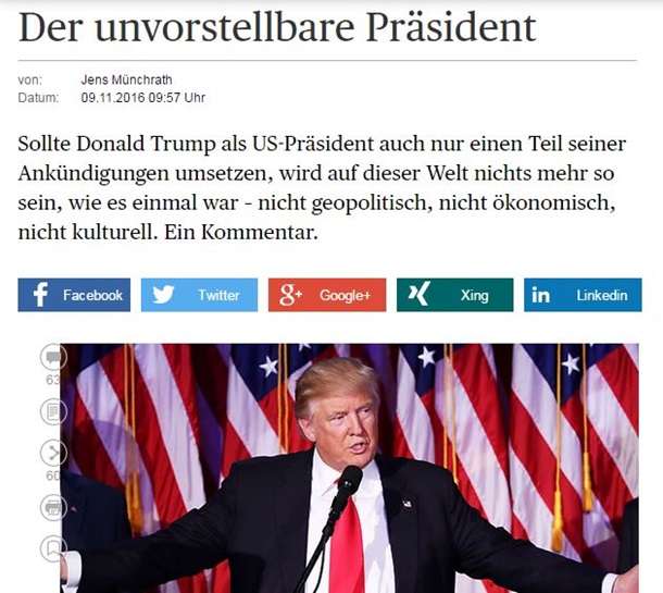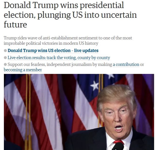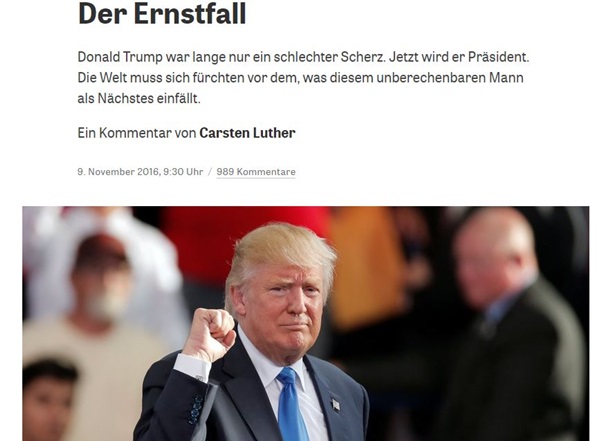 W artykule “Jak Trump wykorzystał społeczny gniew, aby zostać prezydentem” pisze, że jego zwycięstwo jest “najbardziej oszałamiające politycznym zaburzenia amerykańskiej historii”.