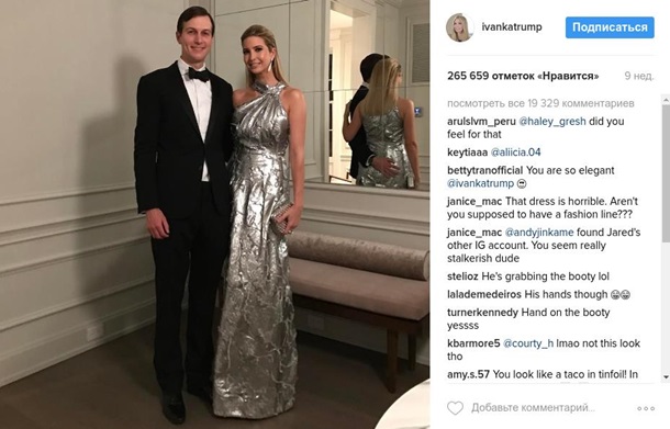 Do tego, w końcu stycznia na Иванку Trump nabijają, panie harding ze względu na jej sukni, którą nosiła na uroczystą kolację w Waszyngtonie.