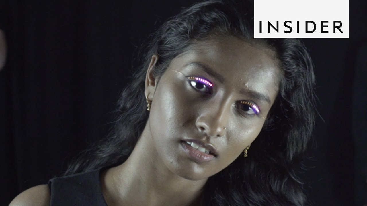 f.lashes represent the thin led strips, glued on the eyelids over the eyelashes. The LEDs are connected by thin wires with the control unit, fastened with pins at the nape of the model. Apart from flat batteries, which lasts for about 4 hours, the block contains a motion-sensing controller. The device boasts five different modes of operation of the LEDs. For example, the eyelashes can sparkle with lights, just like the talking car in the TV series Knight Rider. The head movements of the user can also run various light patterns that, on assurance of the developers of the technology, looks especially striking during dancing.