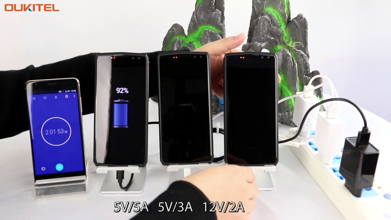 Although the voltage of a quite traditional, 5 V adapter has a high current of 5 A, which ensures fast charging. Experts OUKITEL prepared a video in which he compared the timing charging with different adapters. It turned out that the smartphone could charge the adapter at 5V/5A, who took this for only 2 hours and 50 minutes.