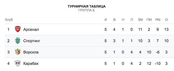 Teraz w ligowej tabeli Ligi Europy drużyna Bazyli Сачко zajmuje 3 miejsce z 3 punktami na koncie, na pierwszym miejscu znajduje się Arsenał.