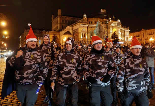 Kilka tysięcy uczestników zapalili pochodnie i tworząca kolumną ruszyliśmy w centrum stolicy do Majdanu Niezależności. Kolumnę prowadził jedyny kandydat na prezydenta od nacjonalistycznych sił Rusłan Кошулинский. Na miejscu pracowało około 30 pracowników policji dialogu.