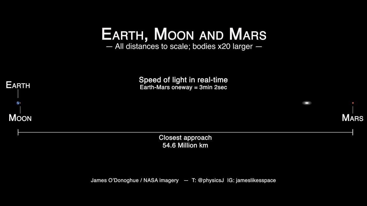 The fast transmission of messages between Earth and Mars is possible at the moment, when the planets are at closest point of approach. However, this happens only about once in two years. In addition, even in this case, we are separated by a distance of about 54.6 million kilometers. In the video, O’donoghue shows that at this distance, light takes 3 minutes and 2 seconds to get from one planet to another, or 6 minutes on both sides.