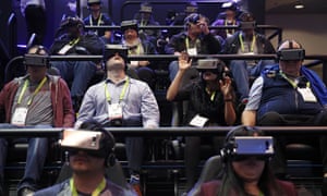 Det är ståplats bara i en virvlande-matta rum på the conference centre knutna till Mandalay Bay hotel – ja, att man – i Las Vegas. Det finns ett hav av teknik journalister, främst män, med namnskyltar dinglande från lime grön nyckelband och klar plast ryggsäckar (en konferens freebie) påminner om en av 1990-talet Gwen Stefani. Dubstep börjar spela.